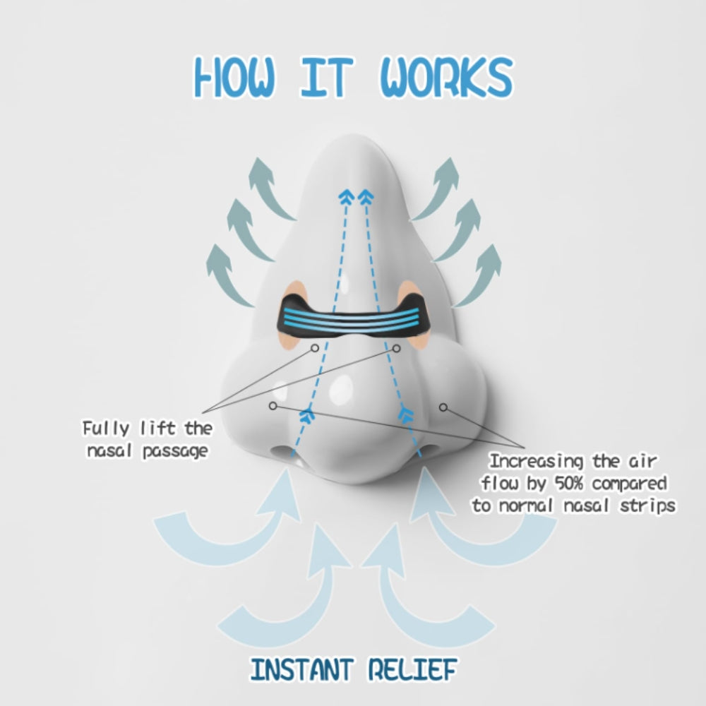 Snarkfri Näsremsa öppnar upp dina näsgångar, ökar luftflödet och minskar snarkning. Genom att lindra nästäppa hjälper den dig att uppnå djupare sömn, lättare andning och att bibehålla rätt pH-balans och bihålhälsa. Vår innovativa teknologiska design gör denna process helt säker och effektiv, med en snabb och smärtfri applicerings- och borttagningsprocess.